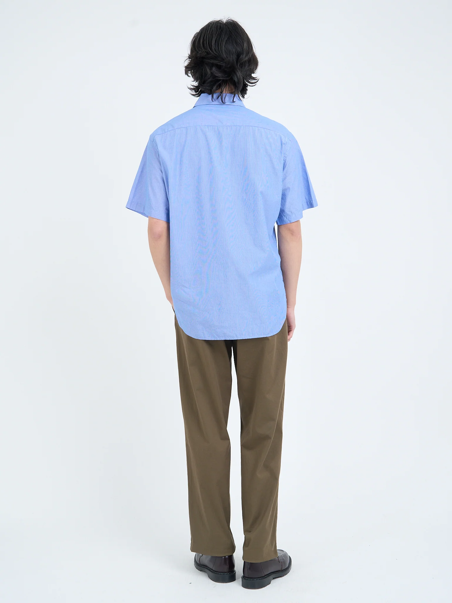 Crafted in our Nash Blue quality, it’s made from a lightweight cotton poplin with a distinctive paper-touch finish, giving the fabric a crisp feel and clean structure. The fine stripe adds subtle visual interest while keeping the look refined and easy to wear.